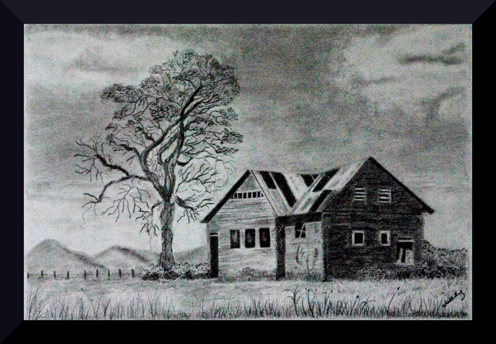 Title : Landscape Drawing Of A House